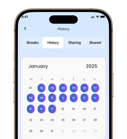 Track your consistency and stay inspired by watching your progress build, one day at a time.